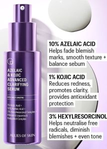 - Option B (The Clearer): Azelaic & Kojic Advanced Clarifying Serum (To hit pigmentation while you sleep).